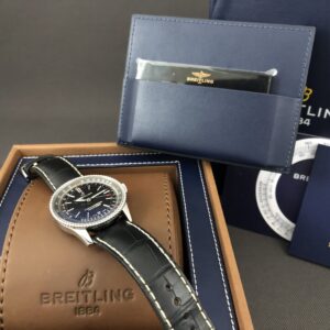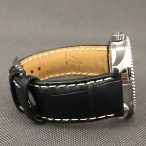 Denne elegante udgave på 38mm af det ikoniske Navitimer i stål glider let ind under skjorten med sin højde på 10,10mm. Værket er et Breitling caliber 17 og er automatisk og har en gangreserve på ca. 38 timer. Lug bredden er 20mm og den sorte croco rem matcher skiven flot. Søger du et klassisk ur med historisk appel, så kan dette være noget for dig.