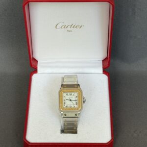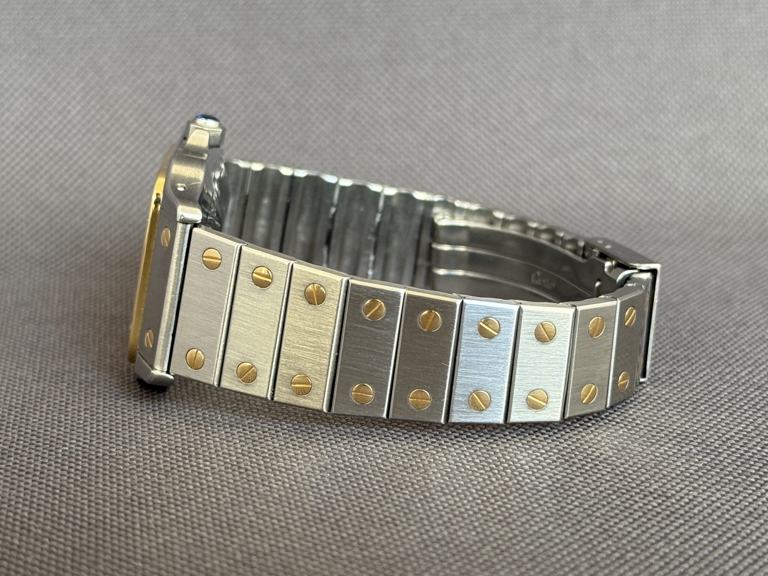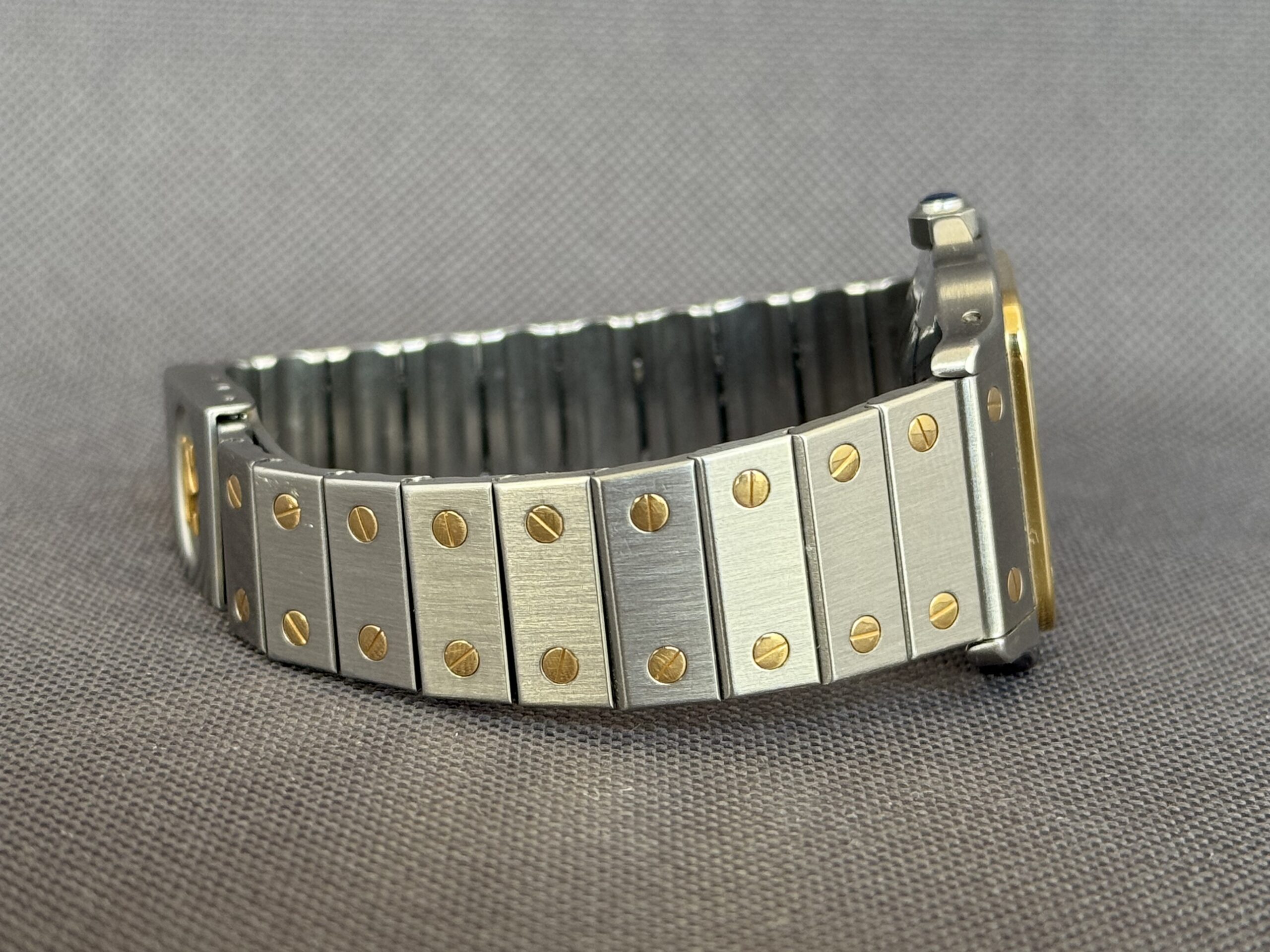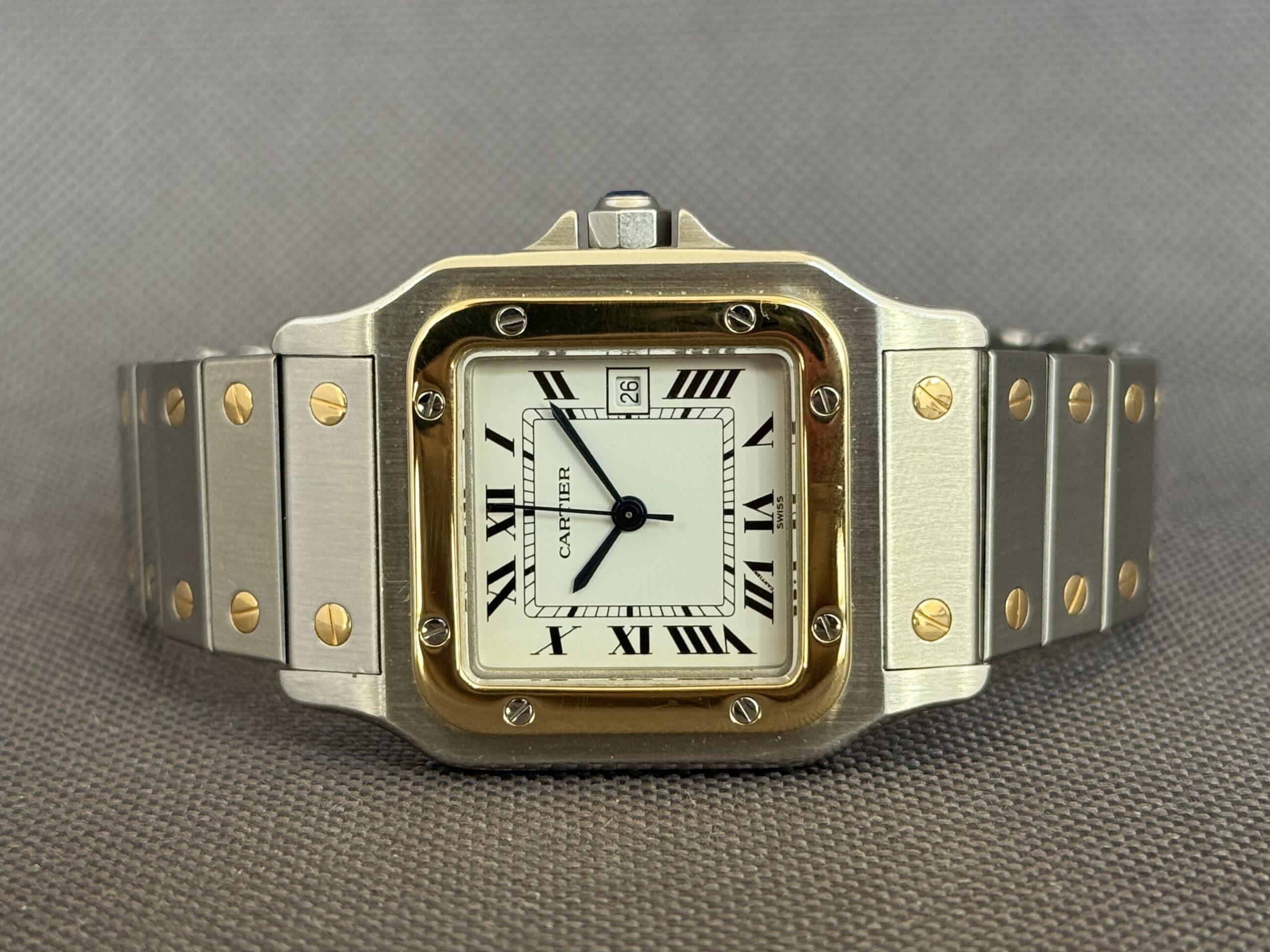Cartier Santos i stål og 18 K guld i rigtig flot stand, servicedokumenter medfølger fra Cartier AD i 2019.