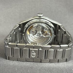 Drøn lækker ny udgave af GP klassikeren Laureato fra 70’erne. Uret er stadig med integreret lænke med polerede centerlinks. Et behageligt ur, der ligger fladt på håndleddet. Den blå skive skal opleves, samt de kniv skarpe visere og indeks, der er enorm lette at aflæse. Den gennemsigtige bagkasse giver udsyn til det smukke automatiske værk kaliber GP01800-0013, der yder 54 timers gangreserve. Uret er vandtæt til 100m.