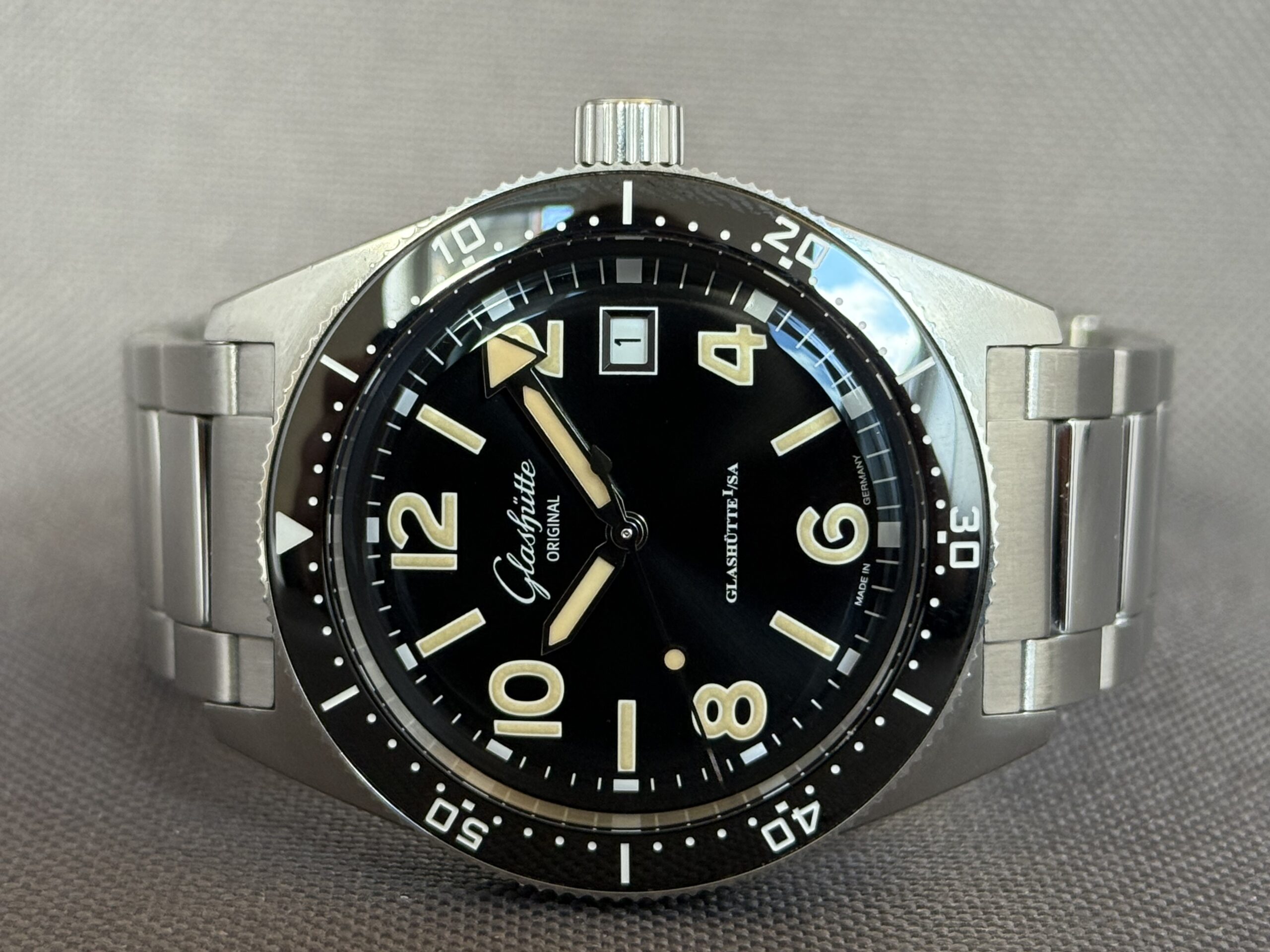 Super flot dykkerur fra Glashütte Original i 39,5mm med sort keramisk bezel, i logoet på låsen kan man let justere lænkens længde. Uret er født med Glashütte’s in-house calibre 39-11 værk med en gangreserve på 42 timer, vandtæthed 200m.