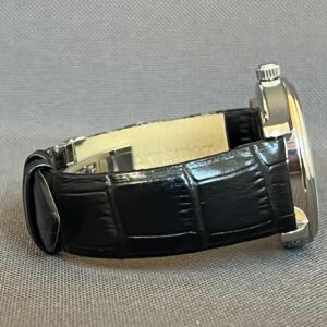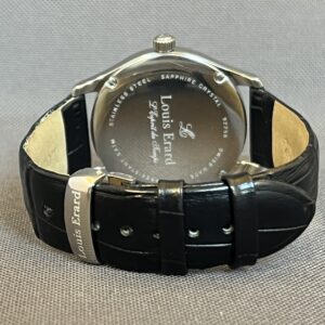 Super lækkert Louis Erard i stål med sort skive og sort kroko med foldespænde.