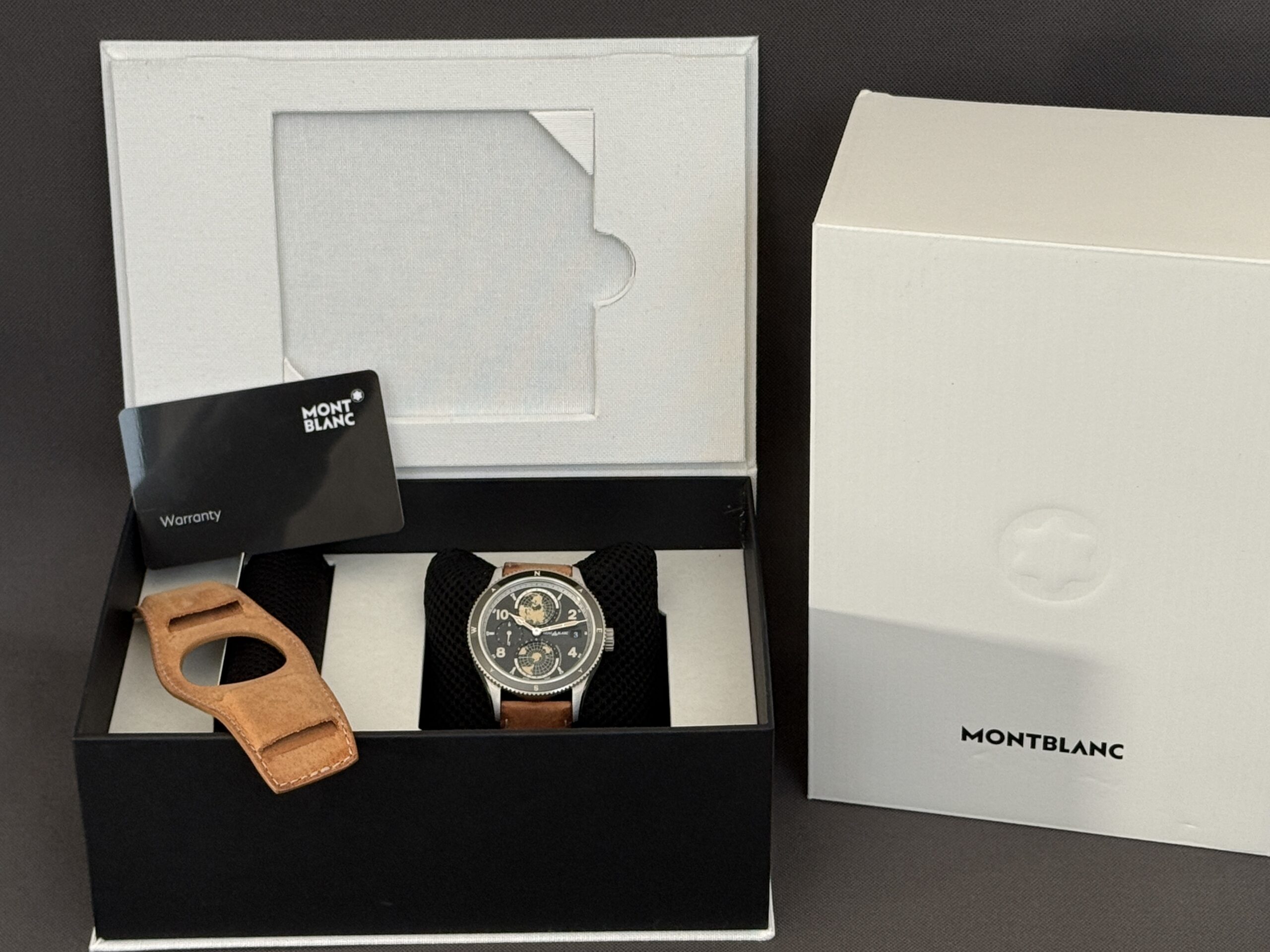 Nyt eksemplar af det elegante og robuste Montblanc 1858 Geosphere Worldtime som bl.a. er designet til den moderne rejsende. Uret er med sort urskive med tydelige, selvlysende markeringer samt en kompas-inspireret keramisk bezel. Inde i den robuste stålkasse sidder det automatisk MB 29.25-urværk med 42 timers gangreserve. Blandt funktionerne finder man dato, GMT-funktion samt Montblancs karakteristiske worldtime-visning med roterende globusser for nord- og sydhalvkuglen, inkl. dag/nat-indikator. Vandtæt til 100 meter.