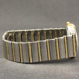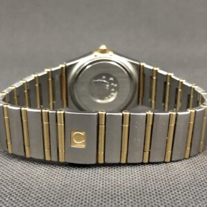 Smukt Omega Constellation i guld/stål med perlemorsskive og brillanter i kransen. Uret kommer på lænke med foldelås.