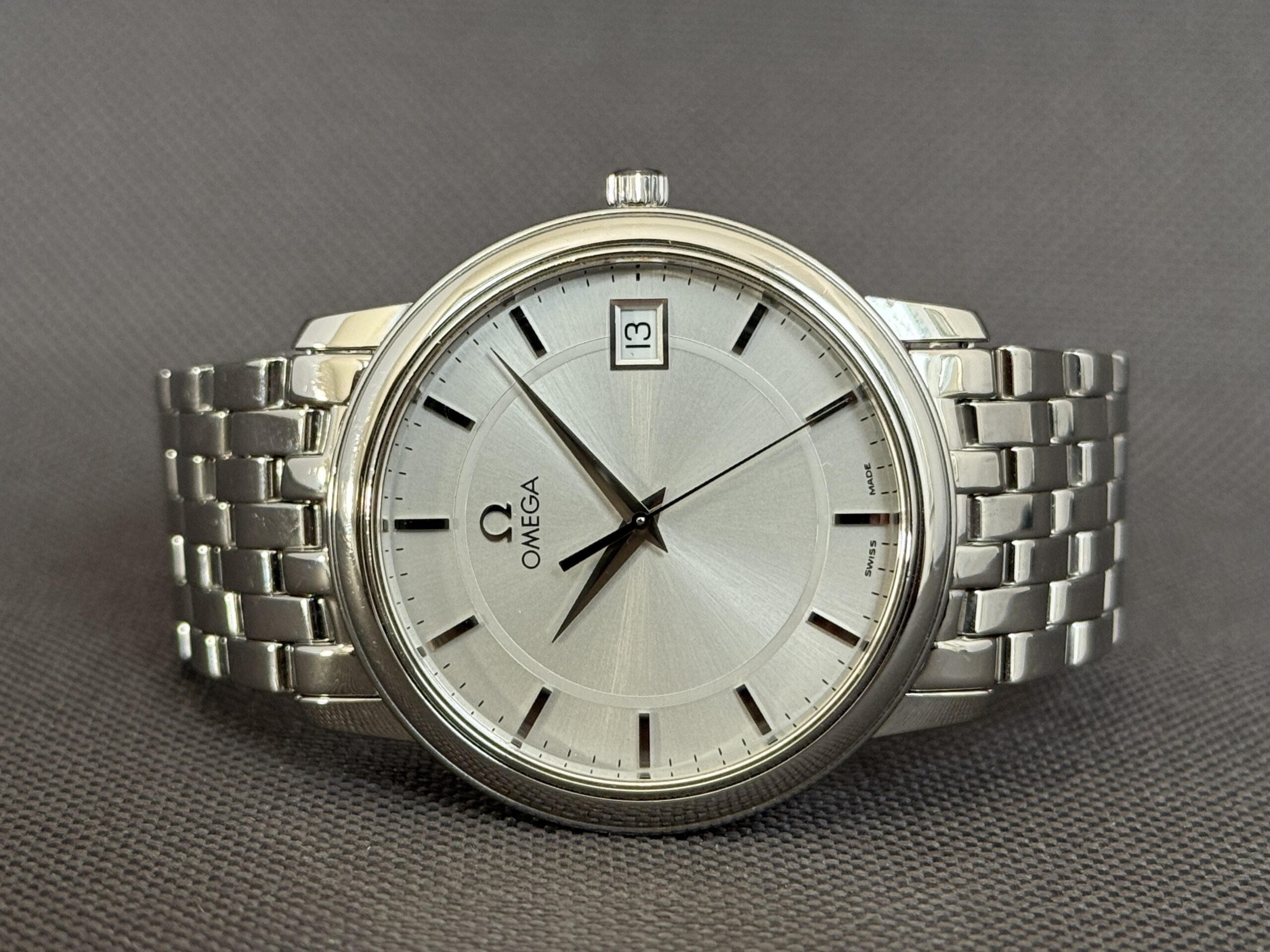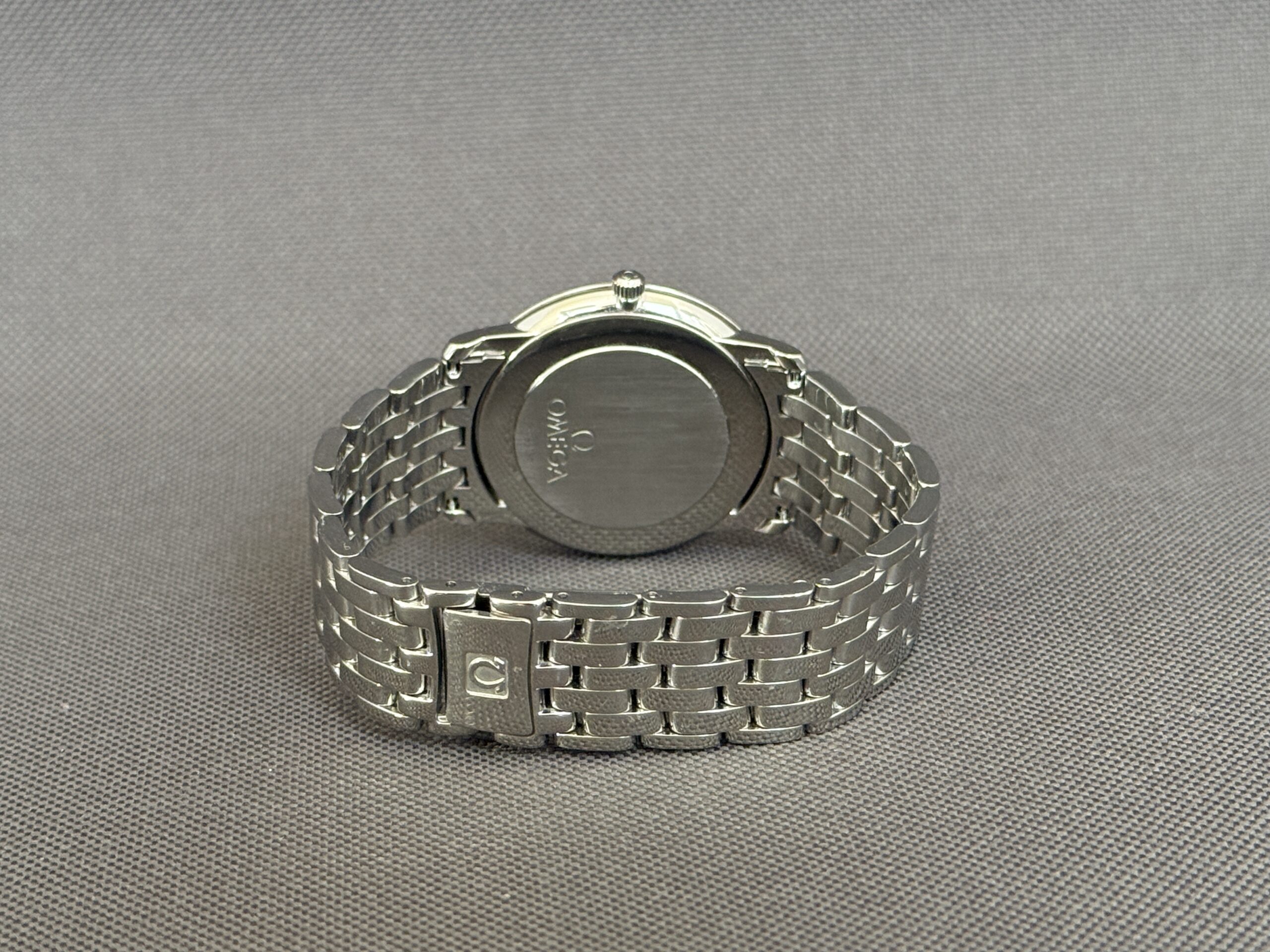 Flot og elegant De Ville Prestige på 34mm som repræsenterer Omega’s klassiske designtradition. Uret drives af Omega’s Quarts Calibre 1532 som kræver minimal vedligeholdelse. Flot og klassisk unisex dressur fra Omega.
