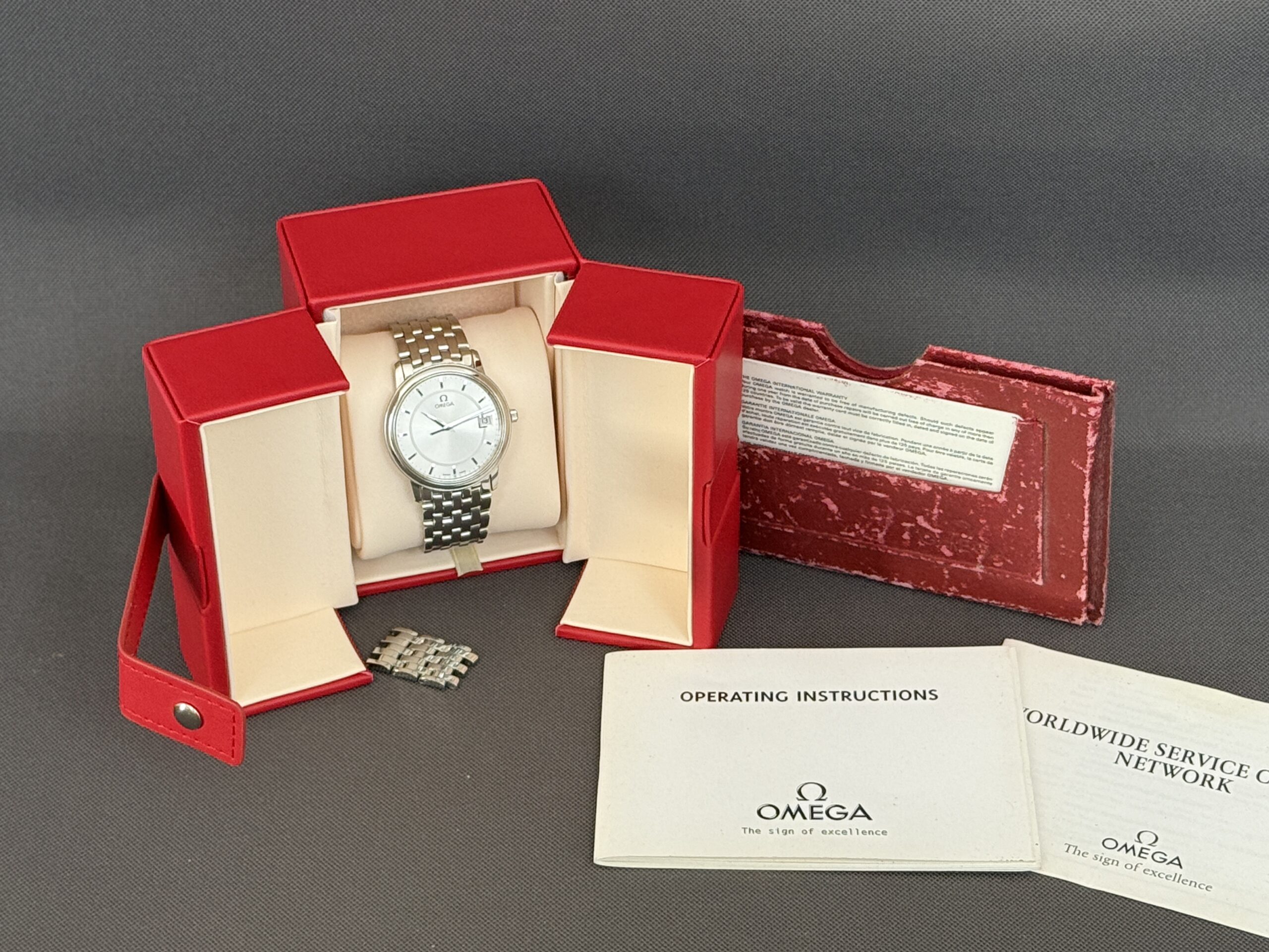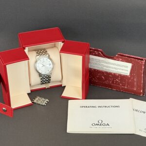 Tilbehør: Omega travel boks, papirer, certifikat.