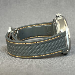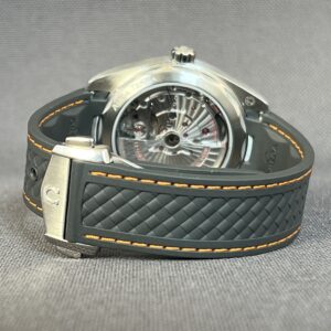 Lækkert Aqua Terra med hvid skive og gummirem med foldespænde. Det automatiske værk yder 60 timers gangreserve. Vandtæthed til 150m.
