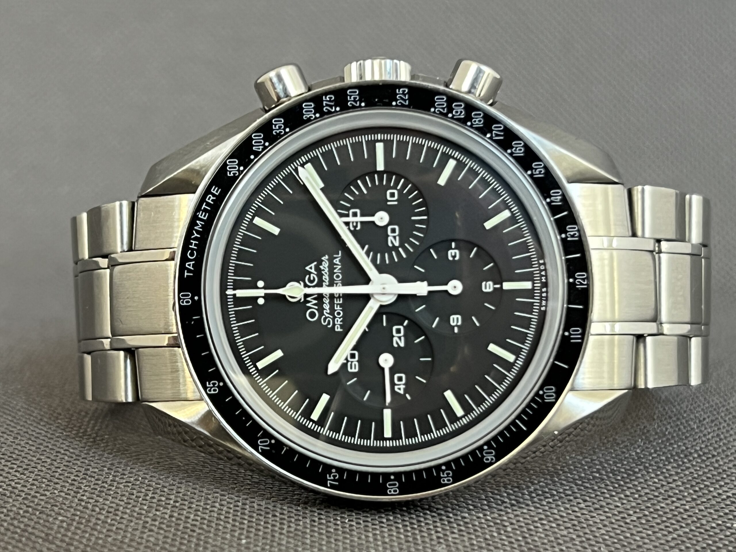 Det klassiske Speedmaster i 42mm med safir glas og safir bagkasse og manuelt værk.