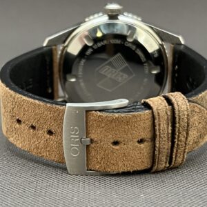 Et lækkert dykkerur fra Oris med grøn skive og læderrem. Det automatiske værk yder 38 timers gangreserve. Vandtæthed til 100m.