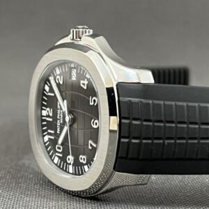 Nyt og ubrugt Aquanaut i stål med uncut strap. Det automatiske værk yder 45 timers gangreserve. Vandtæthed til 100m.
