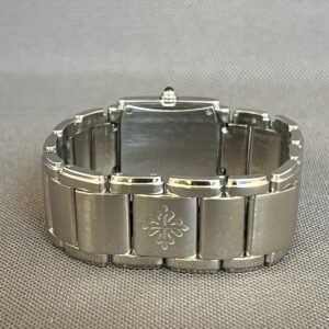 Rustfrit stål Patek Philippe dameur, model Twenty~4, med armbånd i integreret rustfrit stål fra Patek Philippe og skjult dobbeltfoldet spænde.