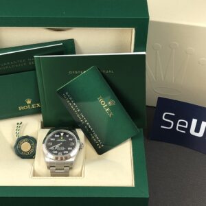 Et perfekt Rolex med et råt udtryk i skiven. Blank bezel og Oyster lænke med lås, der har easylink, hvilket giver dig mulighed for hurtigt at justere lænken med 5mm uden værktøj. Det automatiske værk 3131 yder 48 timers gangreserve. Vandtæthed til 100m.