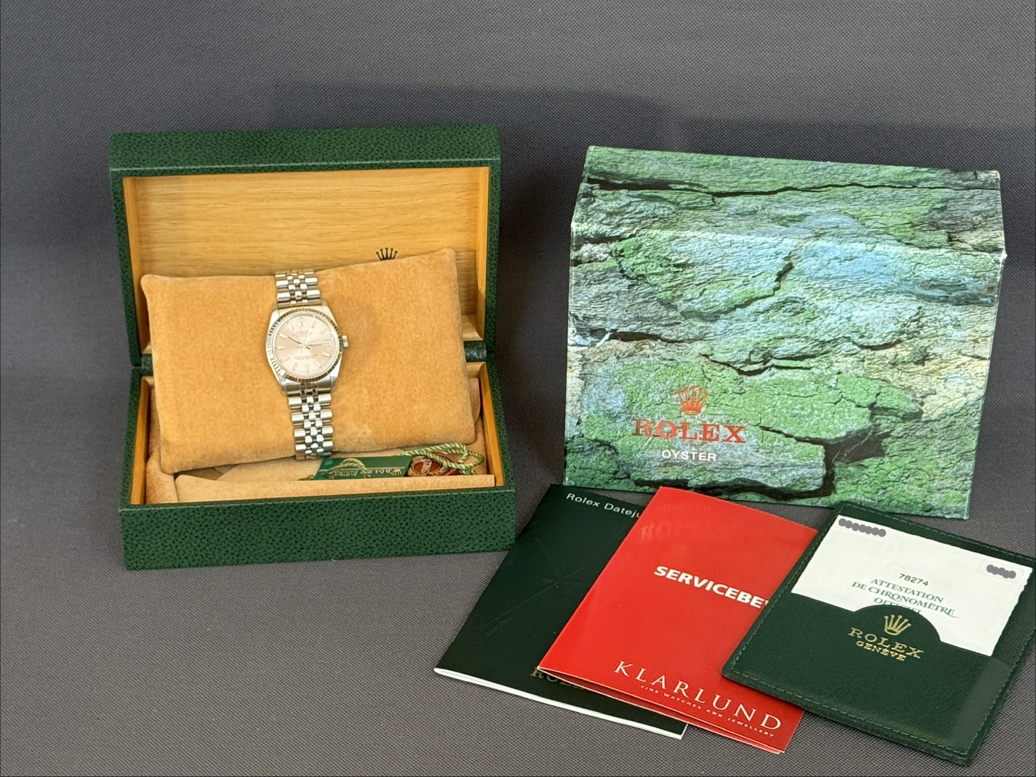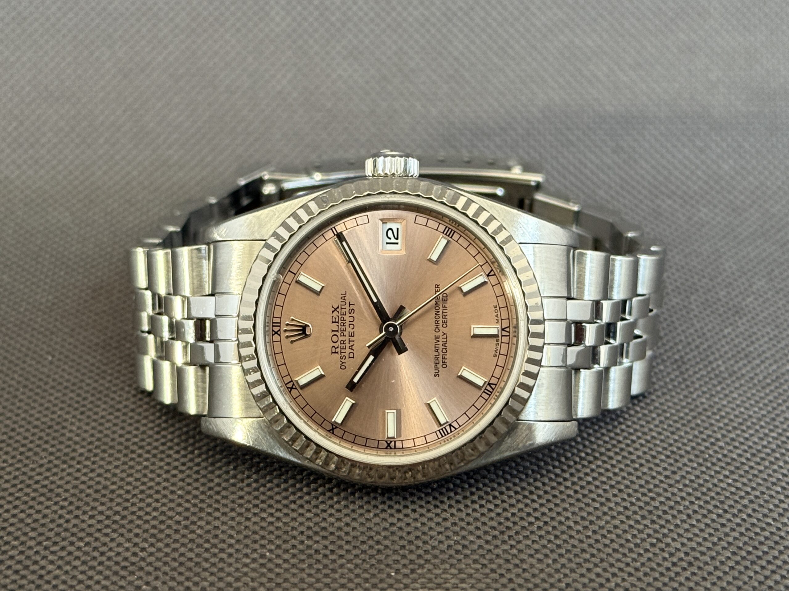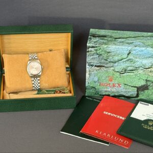 Flot og elegant Rolex Datejust 31 med riflet hvidgulds lynette og den populære jubilee lænke. Uret er komplet sæt fra Klarlund. Inde i urkassen sidder Rolex’ inhouse caliber 2235 som yder 48 timers gangreserve samt vandtæthed ned til 100 meter.