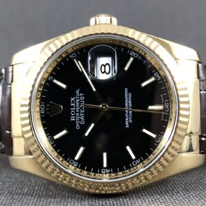 Et eksklusivt Datejust i 18k guld med sortskive, kroko-rem og lås i 18k guld. Det robuste værk 3135 yder gangreserve på 48 timer. Vandtæthed til 100m.
