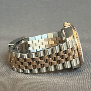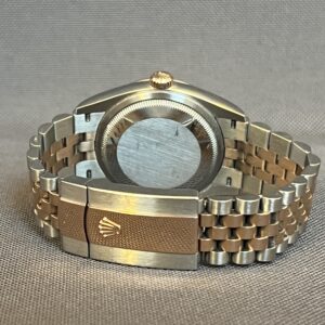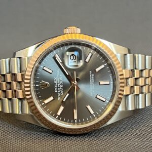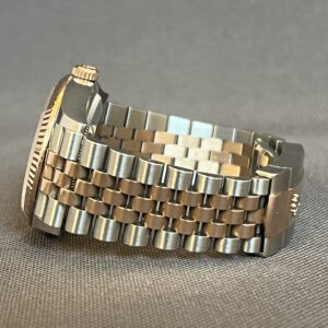 Denne eksklusive udgave i rosa guld/stål giver et elegant og klassisk udtryk. Den grå rhodium skive har ‘sunburst’ effekt og ændrer farve i forskelligt lys. I urkassen sidder det forbedrede værk 3235 med de imponerende 70 timers gangreserve og en præcision på +/- 2 sek. Jubilee lænken er super smuk og komfortabel og har en lås med ‘easylink’, der giver mulighed for en hurtig tilpasning på 5mm. Uret er ligeså robust, som det er elegant og vandtæt til 100m.