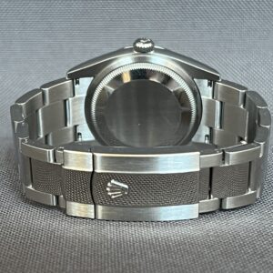 Den eftertragtede udgave i hvidguld og stål med blue fluted motif skive. I urkassen sidder det forbedrede værk 3235 med de imponerende 70 timers gangreserve og en præcision på +/- 2 sek. Oysterlænken er med de polerede midterled og en lås med ‘easylink’, der giver mulighed for en hurtig tilpasning på 5mm. Uret er ligeså robust, som det er smukt og vandtæt til 100m.