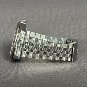Datejust 41 med den populære ‘Wimbledon’ skive, hvidgulskrans og jubilee lænke. I låsen kan lænken hurtigt justeres 5mm. Det automatiske værk yder 70 timers gangreserve og har en præcision på +/- 2 sek. Vandtæthed til 100m.