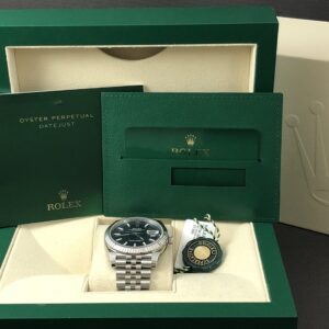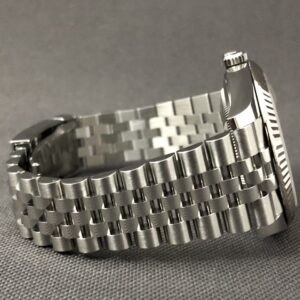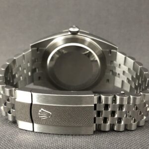 Et NYT eksemplar af Datejust 41 med blå skive, hvidgulskrans og jubilee lænke. I låsen kan lænken hurtigt justeres 5mm. Det automatiske værk yder 70 timers gangreserve og har en præcision på +/- 2 sek. Vandtæthed til 100m.