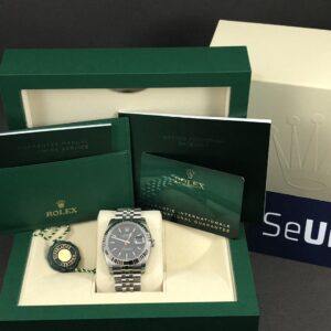 NEW OLD STOCK Turn-O-Graph. Z-serie, solgt fra AD i dec. 2020 med 5 års garanti. Mega lækker mat sort skive med rød skrift og matchende rød dato og sekund viser. Roterende bezel i hvidguld. Det automatiske værk 3135 yder 48 timers gangreserve. Vandtæthed til 100m.