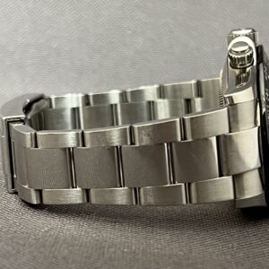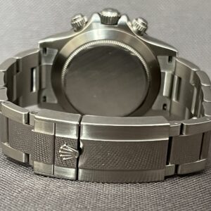 Komplet dansk sæt af det eftertragtede Daytona i stål med sort skive og sort keramisk krans. Uret fremstår upoleret med hairlines fra almindelig brug. Det automatiske værk kaliber 4130 yder 72 timers gangreserve. Vandtæthed til 100m.