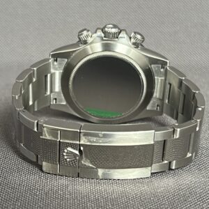 Komplet sæt af det eftertragtede Daytona i stål med sort skive og sort keramisk krans. Det automatiske værk kaliber 4130 yder 72 timers gangreserve. Vandtæthed til 100m