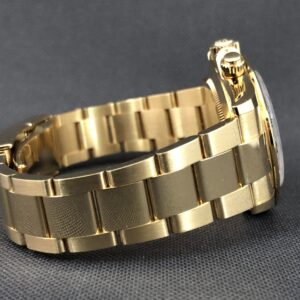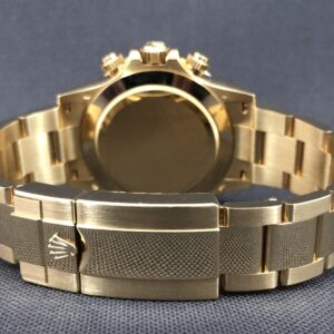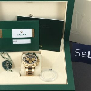 Et super flot eksemplar af den eftertragtede Daytona i 18k guld med den populære sorte skive med gule sub dials og rød kronograf-viser. Det automatiske værk yder 72 timers gangreserve. Vandtæthed til 100m.