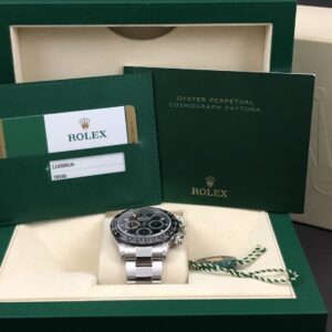 Et MINT eksemplar af det eftertragtede Daytona i stål med sort skive og keramisk krans. Det automatiske værk kaliber 4130 yder 72 timers gangreserve. Vandtæthed til 100m.