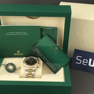 Et NYT eksemplar af den eftertragtede Daytona i 18k guld og stål med sort skive. Det automatiske værk kaliber 4130 yder 72 timers gangreserve og en præcision på +/- 2 sek. Vandtæthed 100m.