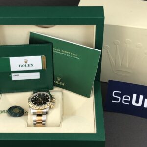 Et NYT eksemplar af den eftertragtede Daytona i 18k guld og stål med sort skive. Det automatiske værk kaliber 4130 yder 72 timers gangreserve og en præcision på +/- 2 sek. Vandtæthed 100m.