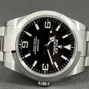 Her får du et NYT og ubrugt eksemplar af den udgåede Explorer i 39. Det automatiske værk 3132 yder 48 timers gangreserve og en præcision på +/- 2 sek. Vandtæthed til 100m.