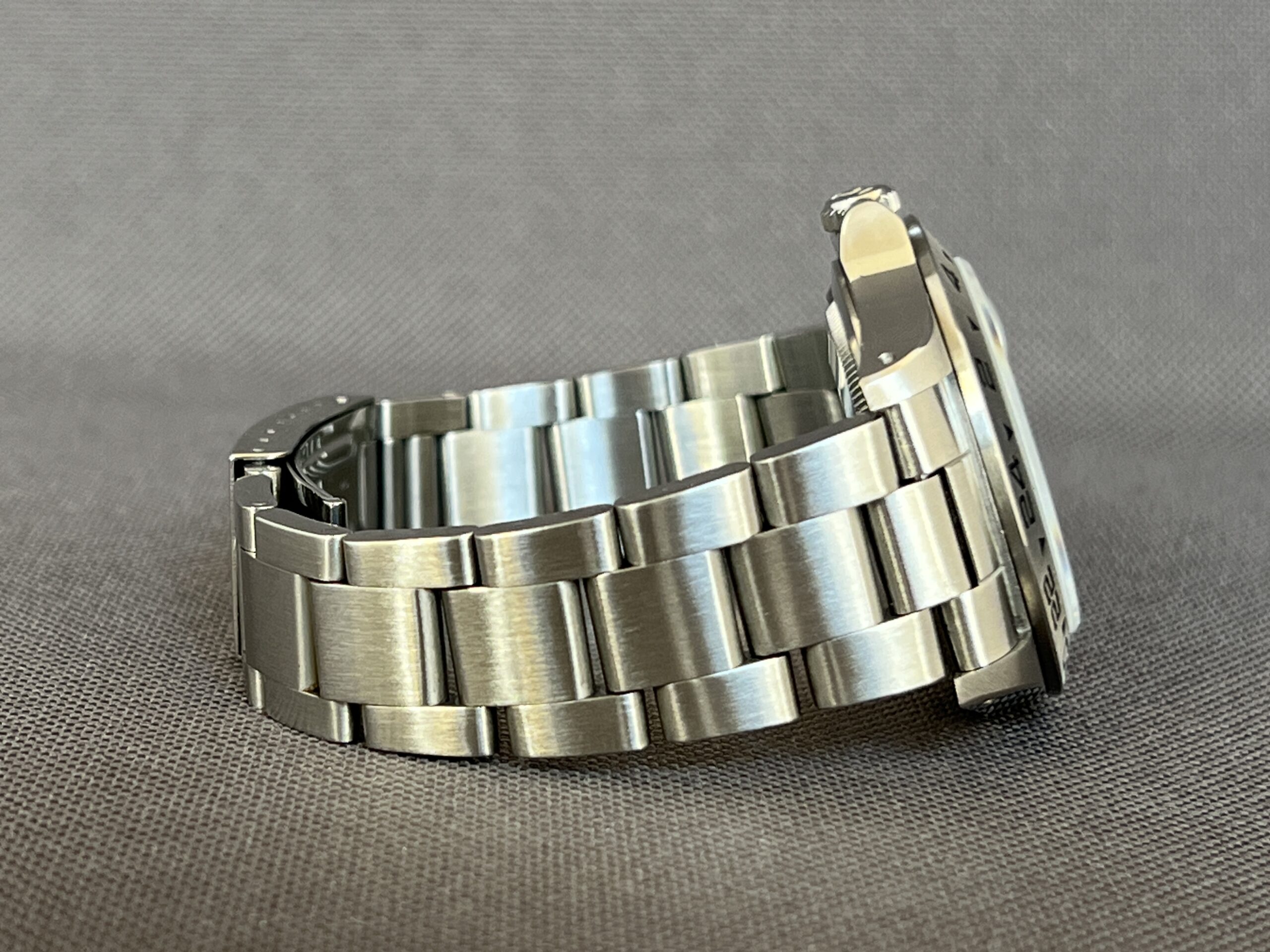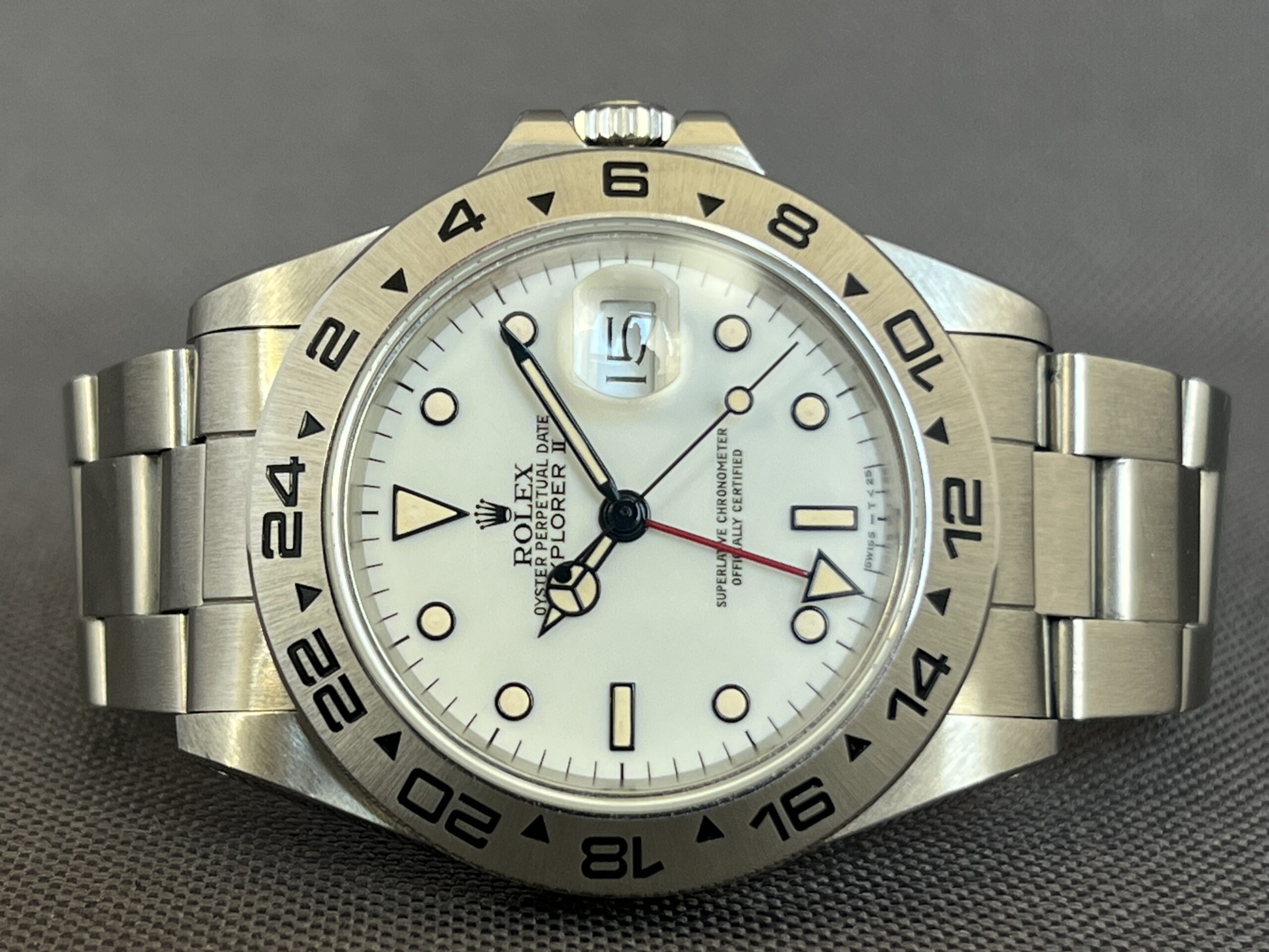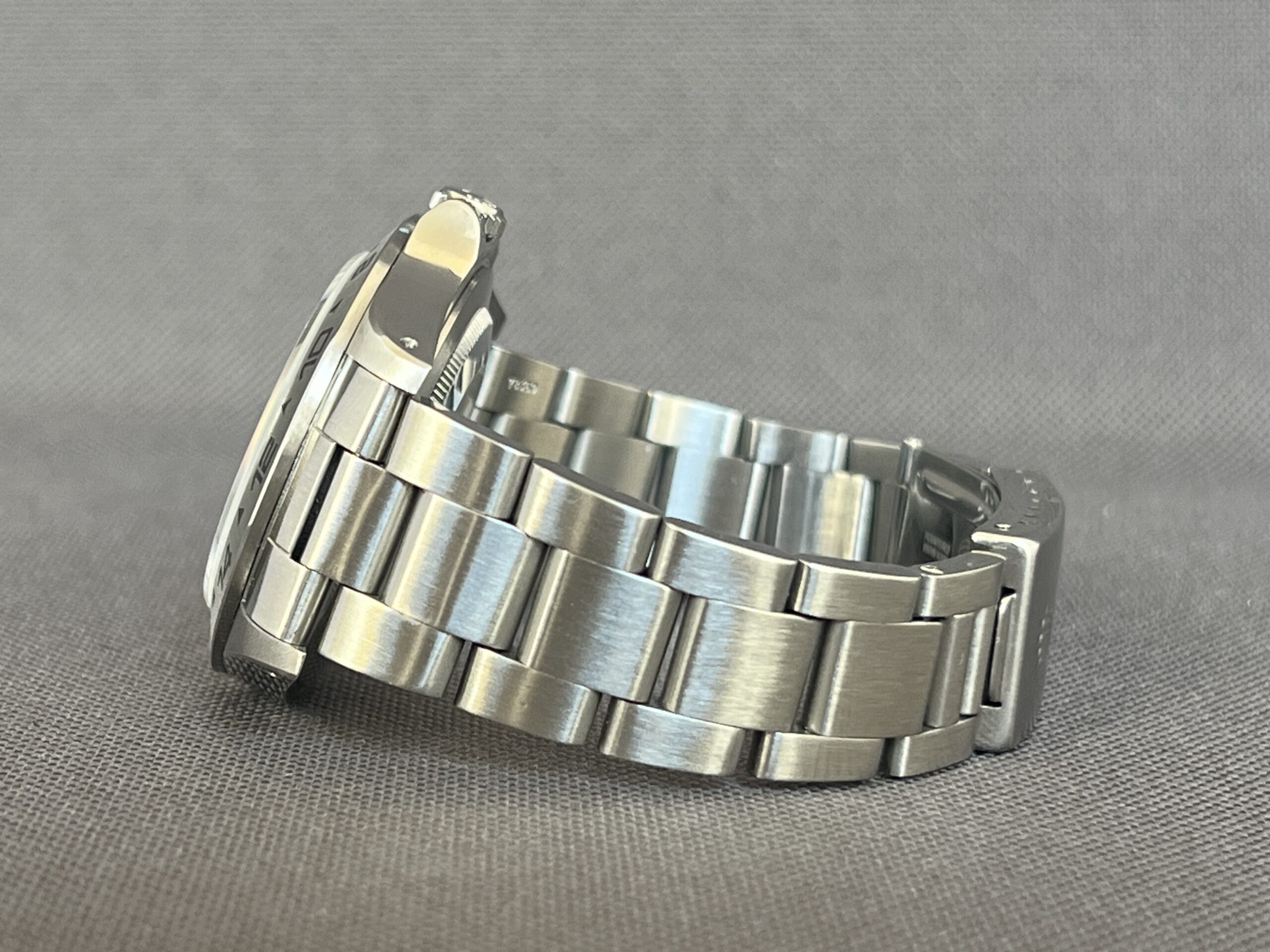 Et vanvittig flot eksemplar af den sjældne reference 16550. Alt periodekorrekt. Uret står nærmest som nyt! Lænken er også fra 1988 og har lidt stræk. Skiven har ensartet fejlfri patina i indeks og visere. Det automatiske værk yder 48 timers gangreserve. Vandtæthed til 100m.