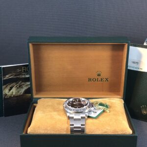 Et flot eksemplar af Explorer II med sort skive og rød GMT viser, der giver dig mulighed for at holde styr på flere tidszoner. Oysterlænke med solide endlinks. Det automatiske værk 3185 yder gangreserve på 48 timer. Vandtæthed til 100m.