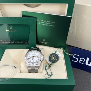 Her den nyeste version af Explorer II med hvid skive. Ved første øjekast ligner den en ref: 216570, men der er alligevel foretaget en del ændringer. Bl.a. nyt værk med længere gangreserve, nye visere, ny lænke, ny lås, ny skive, smallere horn med mere. Stadig vandtæthed til 100m.