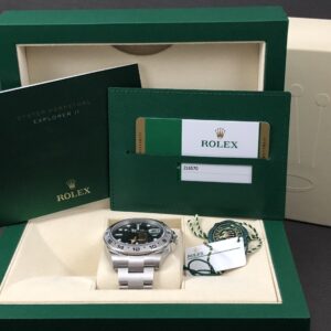 Et toolwatch i stål med fast lynette i stål, sort skive og orange GMT viser. Oyster lænke og lås med easy link, der giver mulighed for hurtig tilpasning på 5mm. Værket er et 3187 med gangreserve på 48 timer og præcision på +/- 2 sek. Vandtæthed til 100m.