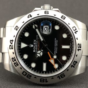 Et toolwatch i stål med fast lynette i stål, sort skive og orange GMT viser. Oyster lænke og lås med easy link, der giver mulighed for hurtig tilpasning på 5mm. Værket er et 3187 med gangreserve på 48 timer og præcision på +/- 2 sek. Vandtæthed til 100m.