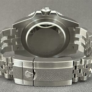Dette er den aktuelle udgave af Rolex GMT-Master II. Også kaldet ‘Batgirl’. Uret har den flotte Jubilee lænke, der har ekstra god bærekomfort og en lås med Easylink, der giver mulighed for en hurtig tilpasning på 5mm. I urkassen sidder det nye forbedrede værk 3285, som har 70 timers gangreserve og en præcision på +/- 2 sek. Med GMT funktionen kan du følge flere tidszoner. Uret er vandtæt til 100m. Et sporty og elegant rolex, der egner sig til alle situationer.