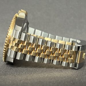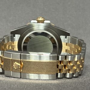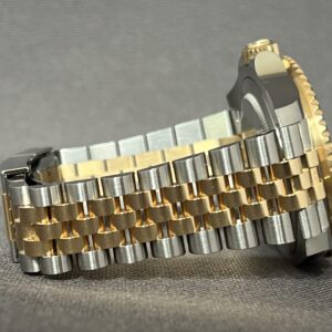 Dette er den aktuelle udgave af Rolex GMT-Master II i 18k guld og stål. Uret har den flotte Jubilee lænke, der har ekstra god bærekomfort og en lås med Easylink, der giver mulighed for en hurtig tilpasning på 5mm. I urkassen sidder det nye forbedrede værk 3285, som har 70 timers gangreserve og en præcision på +/- 2 sek. Med GMT funktionen kan du følge flere tidszoner. Uret er vandtæt til 100m. Et sporty og eksklusivt rolex.