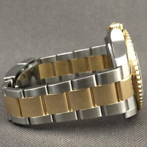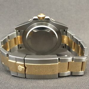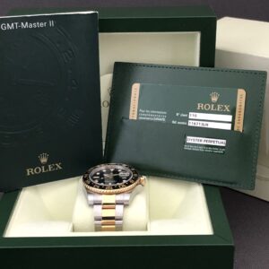 Et flot eksemplar af den udgåede GMT model i 18K guld og stål med oysterlænke og keramisk indlæg. Lænken kan justeres i låsen med 5mm. Det automatiske værk 3186 yder gangreserve på 48 timer. Vandtæthed til 100m. Med dette Rolex kan du holde styr på flere tidszoner.
