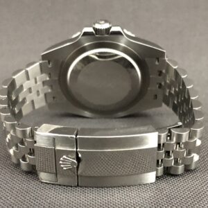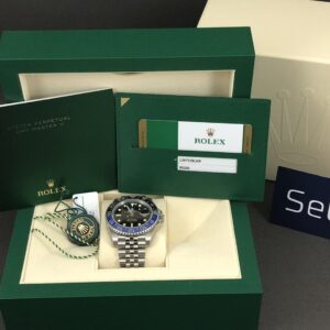 Dette er den nyeste udgave af Rolex GMT-Master II. Også kaldet ‘Batgirl’. Til forskel fra sin forgænger ‘Batman’, så har uret nu fået den flotte Jubilee lænke, der har ekstra god bærekomfort og en lås med Easylink, der giver mulighed for en hurtig tilpasning på 5mm. I urkassen sidder det nye forbedrede værk 3285, som har 70 timers gangreserve og en præcision på +/- 2 sek. Med GMT funktionen kan du følge flere tidszoner. Uret er vandtæt til 100m. Et sporty og elegant rolex, der egner sig til alle situationer.