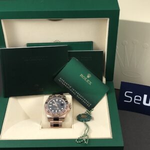 Den eksklusive udgave af GMT- Master II i rosa guld og keramisk indlæg i brun og sort. Det automatiske værk yder 70 timers gangreserve og har en præcision på +/- 2 sek. Vandtæthed til 100m.