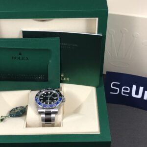 Dette er den aktuelle udgave af Rolex GMT-Master II. Også kaldet ‘Batman’. Uret har den flotte Oyster lænke, der har polerede midterled og en lås med Easylink, der giver mulighed for en hurtig tilpasning på 5mm. I urkassen sidder det nye forbedrede værk 3285, som har 70 timers gangreserve og en præcision på +/- 2 sek. Med GMT funktionen kan du følge flere tidszoner. Uret er vandtæt til 100m. Et sporty og elegant rolex, der egner sig til alle situationer.
