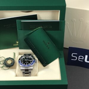 Dette er den aktuelle udgave af Rolex GMT-Master II. Også kaldet ‘Batman’. Uret har den flotte Oyster lænke, der har polerede midterled og en lås med Easylink, der giver mulighed for en hurtig tilpasning på 5mm. I urkassen sidder det nye forbedrede værk 3285, som har 70 timers gangreserve og en præcision på +/- 2 sek. Med GMT funktionen kan du følge flere tidszoner. Uret er vandtæt til 100m. Et sporty og elegant rolex, der egner sig til alle situationer.