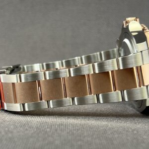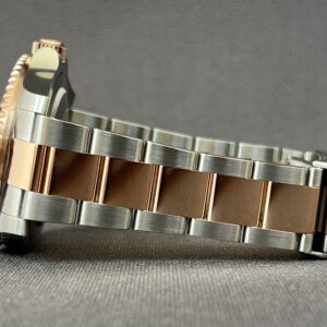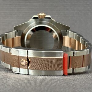 Den eksklusive udgave af GMT- Master II i rosa guld og stål og keramisk indlæg i brun og sort. Det automatiske værk yder 70 timers gangreserve og har en præcision på +/- 2 sek. Vandtæthed til 100m.