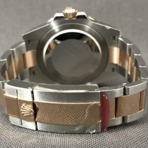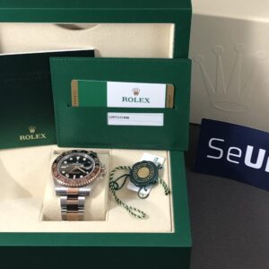 Den eksklusive udgave af GMT- Master II i rosa guld og stål og keramisk indlæg i brun og sort. Det automatiske værk yder 70 timers gangreserve og har en præcision på +/- 2 sek. Vandtæthed til 100m.