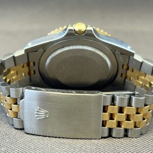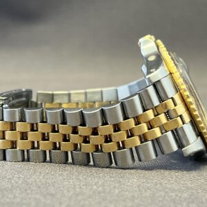 Et piv frækt ‘Tiger Eye’ GMT-Master fra 1984 i 18k guld og stål. Med brunt insert, nipple dial og jubilee lænke. Lænken har mange gode år i sig endnu. 16753 har quick set på dato med Open 6 og 9 og plexi glas. Vintage med moderne funktioner. Det automatiske værk yder 42 timers gangreserve. Vandtæthed til 100m.