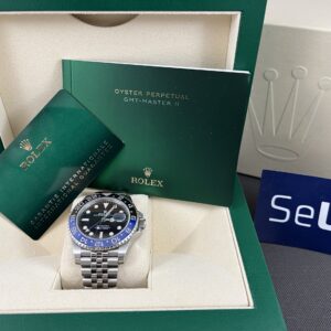 Dette er den aktuelle udgave af Rolex GMT-Master II. Også kaldet ‘Batgirl’. Uret har den flotte Jubilee lænke, der har ekstra god bærekomfort og en lås med Easylink, der giver mulighed for en hurtig tilpasning på 5mm. I urkassen sidder det nye forbedrede værk 3285, som har 70 timers gangreserve og en præcision på +/- 2 sek. Med GMT funktionen kan du følge flere tidszoner. Uret er vandtæt til 100m. Et sporty og elegant rolex, der egner sig til alle situationer.