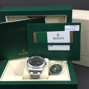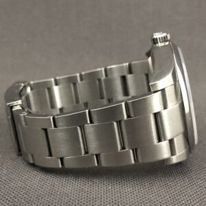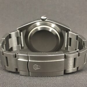 Klassisk og stilrent Rolex i stål med en smuk grå skive, oysterlænke og oysterlås. Værket er et 3132, der har gangreserve på 48 timer og en præcision på +/- 2 sek. Et robust Rolex, der egner sig til enhver lejlighed. Vandtæt til 100m.