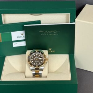 Den eksklusive udgave af Sea-Dweller 43 udført i 18k guld og stål. Det automatiske værk yder 70 timers gangreserve. Vandtæthed til 1220m.