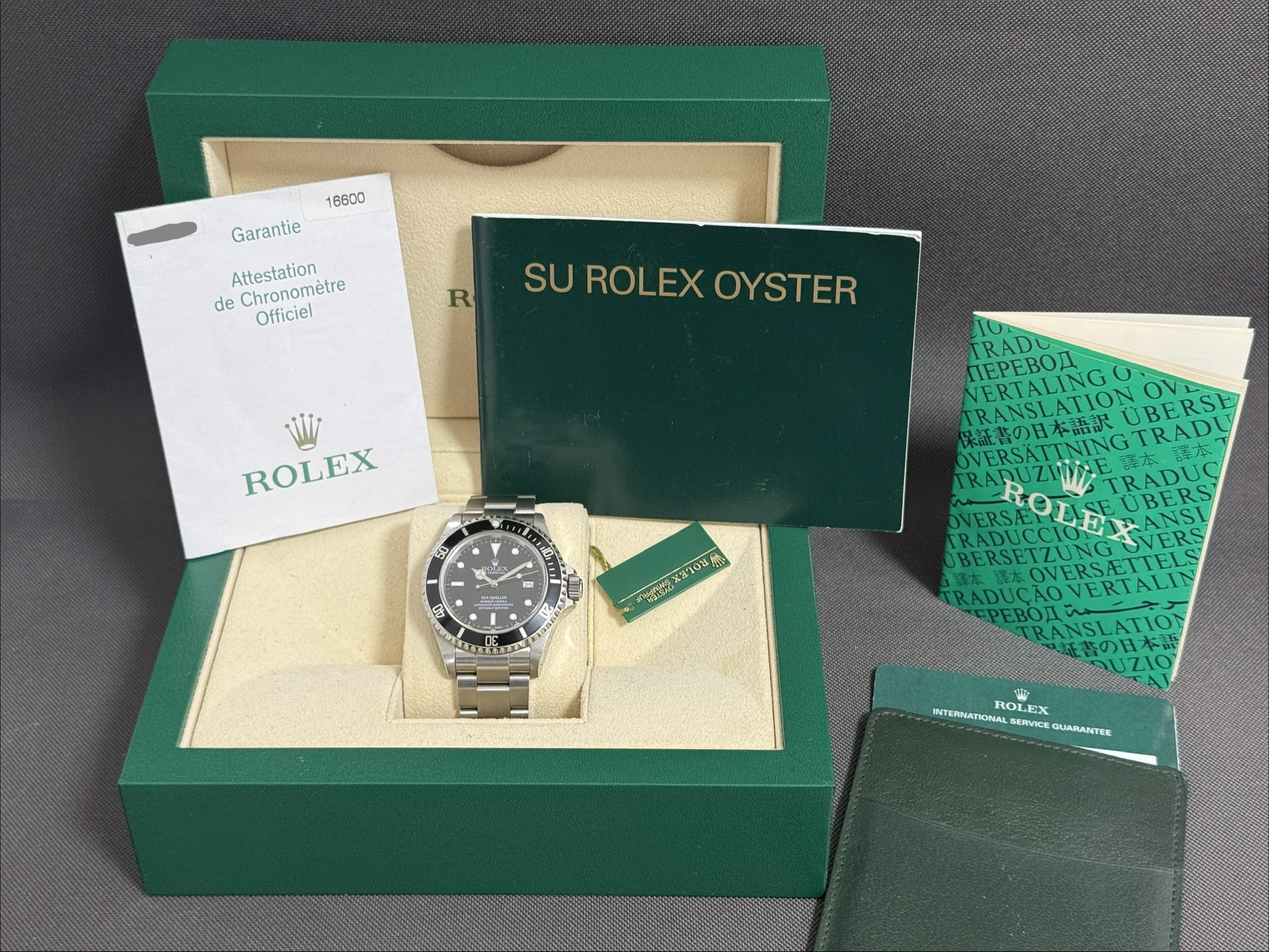 Det populære Rolex Sea-Dweller 16600 i flot stand. Et rigtig tool watch, der kan tåle at blive brugt. Kassen er med stifthuller og oysterlænken er med solide endlinks. Det robuste værk 3135 yder gangreserve på 48 timer. Urkassen er dejlig tyk, med helium-ventil og vandtæthed til 1220m.