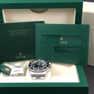 Rolex Sea-Dweller, 126600 med oysterlænke og glidelock til hurtig tilpasning af lænken. Det automatisk værk 3235 yder gangreserve på 70 timer og har en præcision på +/- 2 sek. Vandtæthed til 1220m.