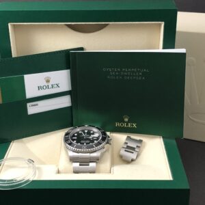 Rolex Sea-Dweller, 126600 i første udgave med Mk1 skive, oysterlænke og glidelock til hurtig tilpasning af lænken. Det automatisk værk 3235 yder gangreserve på 70 timer og har en præcision på +/- 2 sek. Vandtæthed til 1220m.